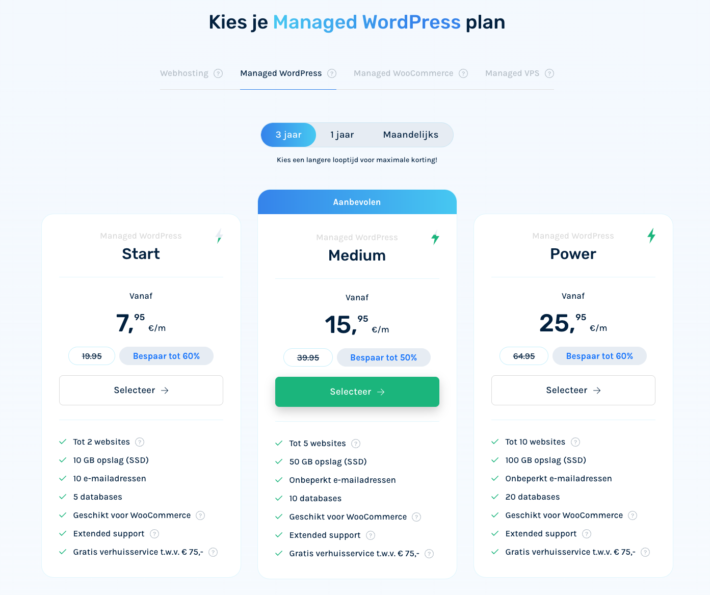 - Keuze uit Webhosting, WordPress Hosting en VPS Hosting