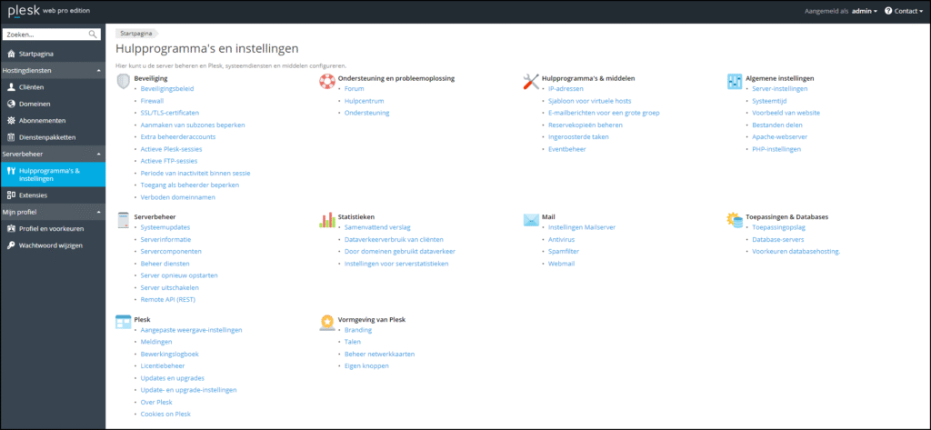 Daarnaast krijg je toegang tot Plesk. Dit geeft je volledige controle over je hostingomgeving. Je kunt er eenvoudig bestanden uploaden, databases beheren, e-mailadressen instellen en SSL-certificaten activeren. Voor technisch onderlegde gebruikers is dit een groot pluspunt, maar ook beginners vinden snel hun weg dankzij de duidelijke indeling.